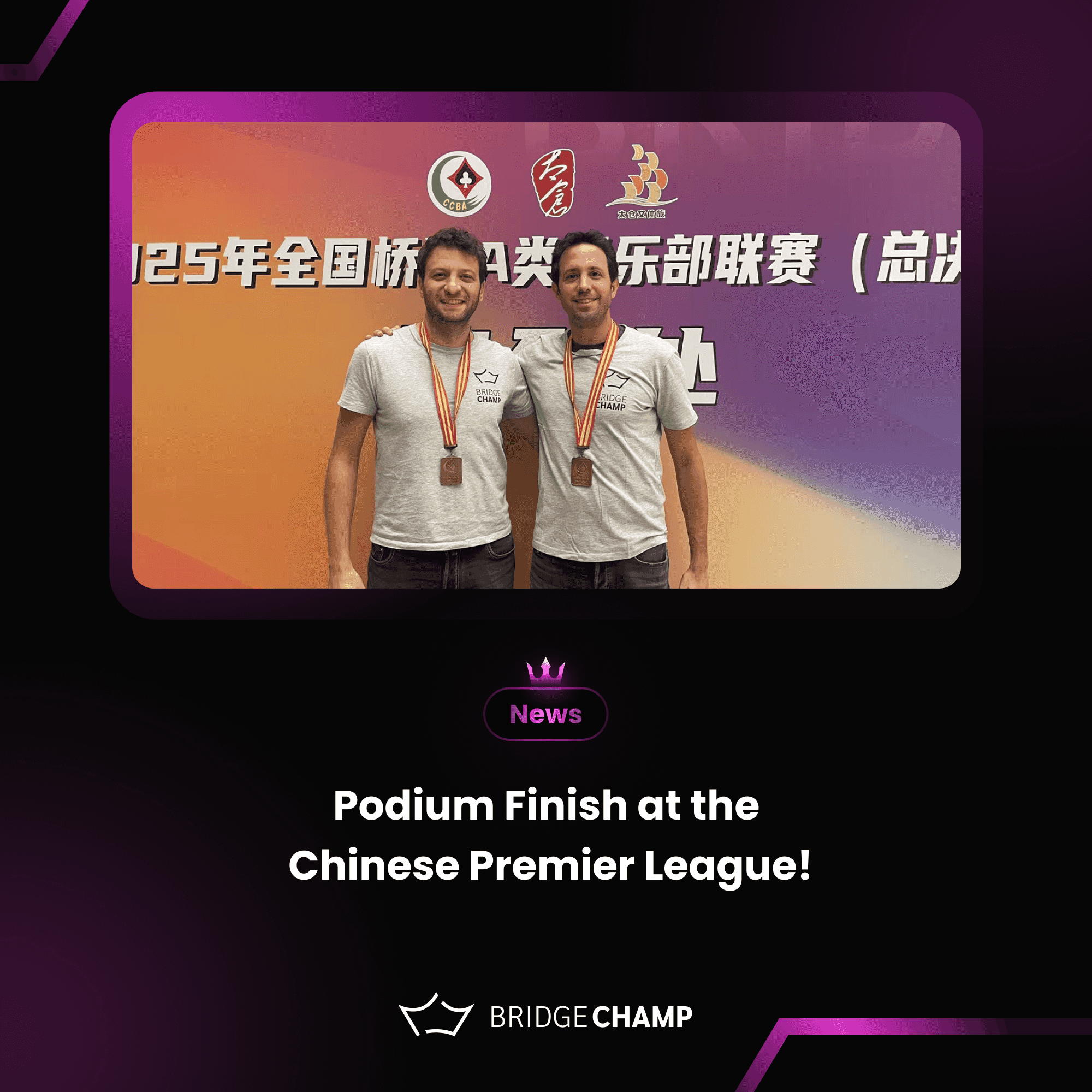 Huge congratulations to our Bridge Champ Ambassadors Andrea Manno & Massimiliano Di Franco for securing 3rd place at the Chinese Premier League Final 4 in Taicang! A fantastic run, world-class play, and a great performance. Bravo!