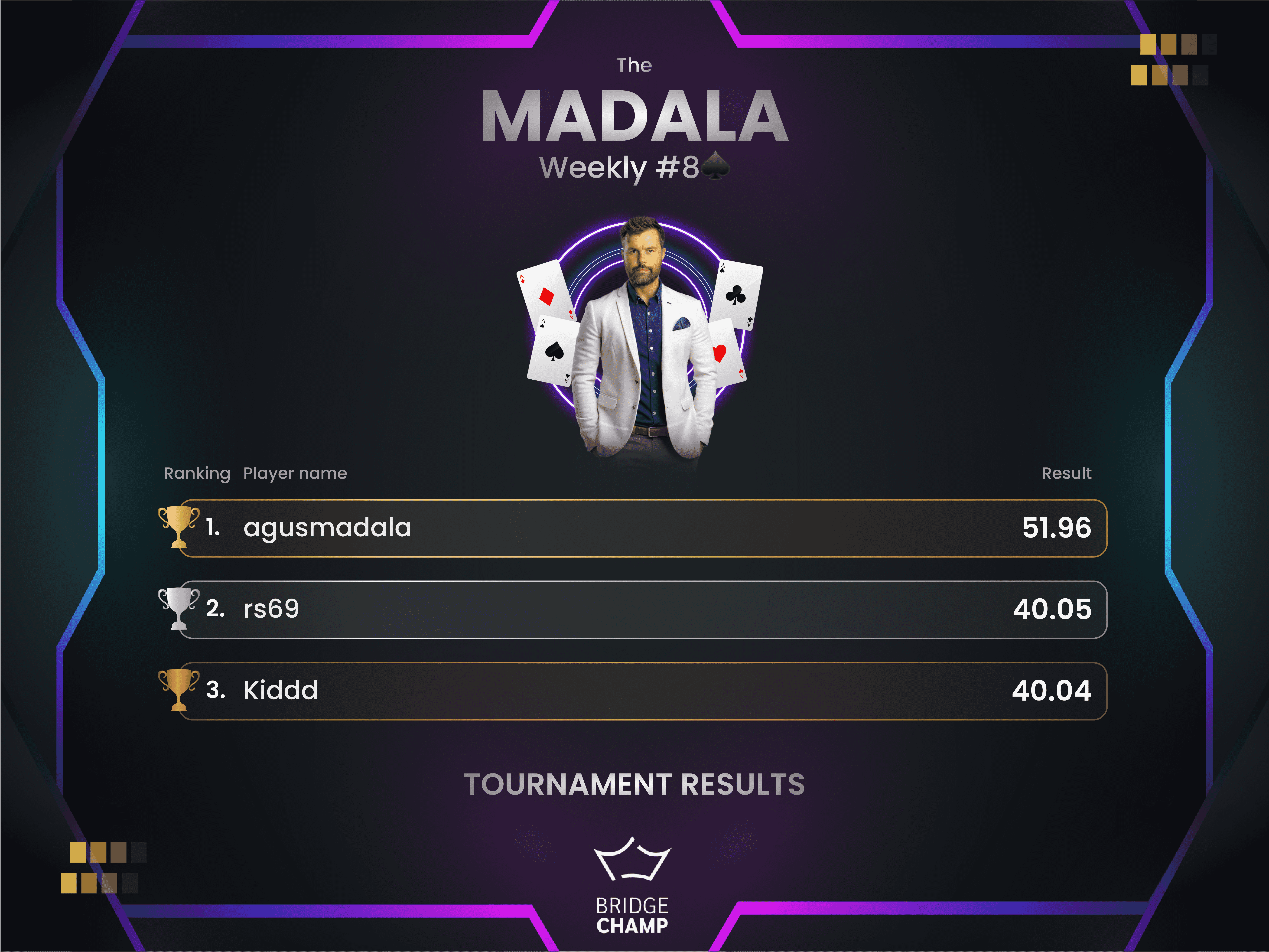 Join today’s FREE tournament and go up against the legendary Agustin Madala. After the match, enjoy his highlights video, featuring expert plays and tips you can learn from! Go to the "Tournaments" section on the website, find Madala Weekly, and click “Join Now.”